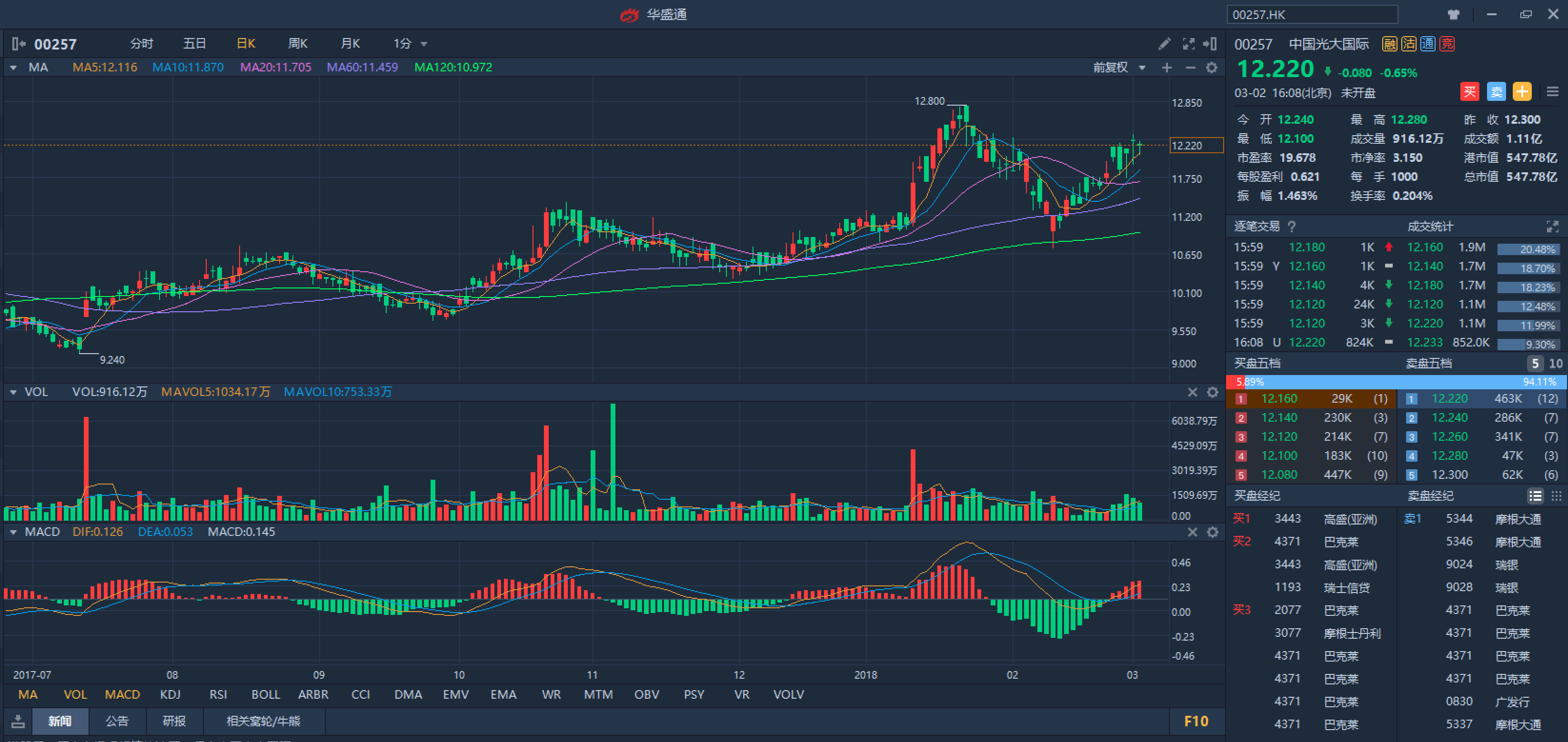 截至2017年6月30日止之半年度业绩为营业额增长68.7%至91.42亿元。税后盈利上升48.5%至17.96亿元。可于现价 12.22元附近吸纳,中长线可见16元,跌穿10.35元止蚀。