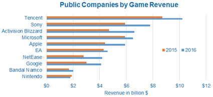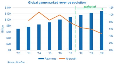 从下图可以看出,全球游戏市场的快速发展与公司顺势而为的逐步壮大,但是随着整体市场增速未来的下滑,公司是否还是能像之前那样实现高速增长,或者现在的股价是否已经反映了未来的增长,投资者需要思考。