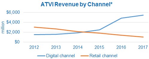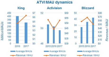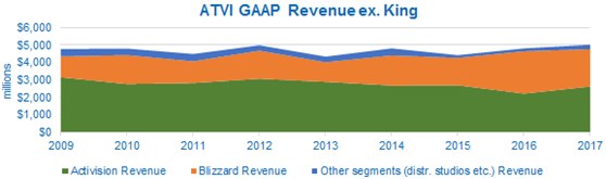尽管近年来,公司每年都有大作登场,但是公司的核心有机增长表现不佳,如果去除收购King带来的移动手游业务收入,公司产品销售近年来增长缓慢,而且期间还出现销售下滑,目前,公司转向微交易或内购来抵消损失,公司收入发展陷入瓶颈。
