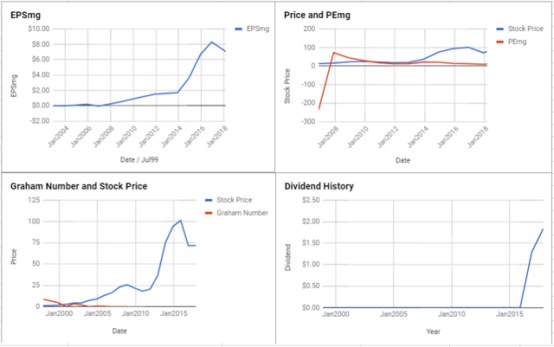 对吉利德科学公司的进一步研究显示,该公司的股价高于格雷厄姆系数(46.47美元)。该公司的股息为每股2.08美元,收益率为2.6%,是目前股息最好的股票之一。PEmg(每股价格/每股收益——现代格雷厄姆)为11.16,低于行业平均的28.67点,从这些估值指标可以看出该公司为业内估值最低的股票之一。后,该公司股票的交易价格比流动资产净值(NCAV)低13.66美元。