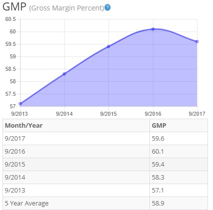 总体而言,星巴克的毛利率在持续增长。通常考虑投资什么公司时,笔者倾向于选择毛利率在30%左右并且保持增长的公司。从下图可以看出,星巴克过去五年的毛利率都保持在60%左右,且除2017年外都在逐渐增长。毫无疑问,星巴克的毛利率表现完全超过笔者预期。