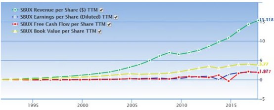 受新开门店影响,星巴克营收继续增长,但过去三年中,星巴克的账面价值和自由现金流开始显现出增速放缓的迹象。
