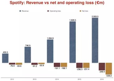 因此,关于Spotify的上市,由于其采取的上市方式以及尚没有盈利,因此,投资者需要注意其股票的波动性。