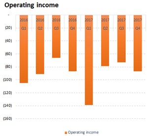 公司2017年销售额接近50亿美元,2016年约为36亿美元,增长近40%。不过由于授权成本很高,公司亏损增加近一倍,达到15亿美元,成为了典型的“营收越高,亏损越多”企业。