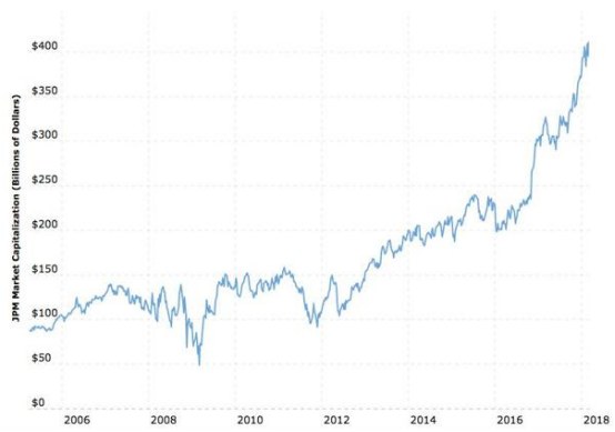 摩根大通对公司未来发展信心十足,公司在去年宣布了高达194亿美元的股票回购计划,之后公司股价大涨近50%。随着股价上涨,摩根大通市值一路逼近4000亿美元。公司2017财年第四季度财报显示,由于受的债券波动小和利差收紧的影响,除债券交易外,几乎每个业务部门都增长强劲。