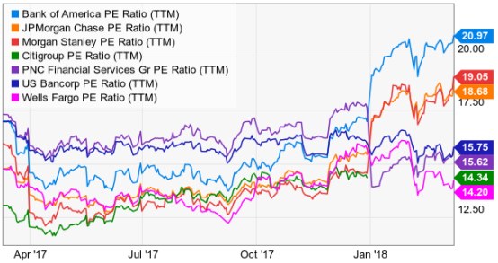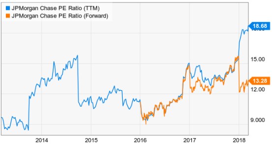 跟大型投行相比,摩根大通当前估值从行业中间水平上升到估值较高的前几位。