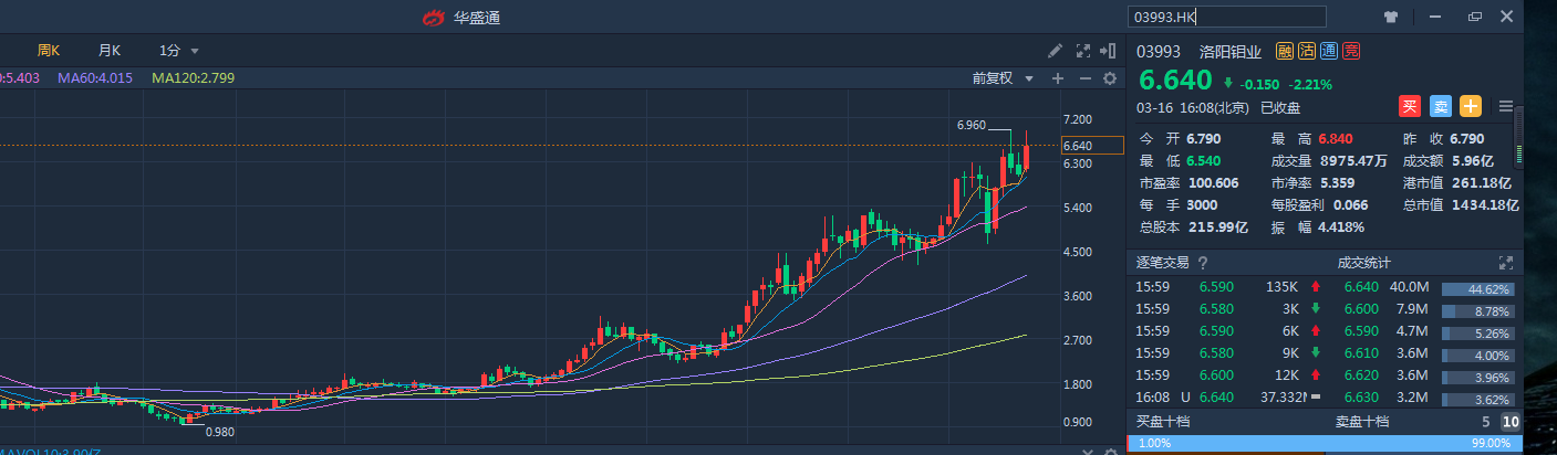 与全球最大的钼加工企业智利 Molyment 合资合作,发展钼高科技平台,专注于钼系列深加工产品。目前成为全球三大钼金属生产商之一。拥有强大的研发力量,并被评为国家认可实验室。同时通过 ISO9001 质量体系、ISO14001环境管理体系、GB/728001 职业健康安全管理体系认证。可于现价6.63元附近买入,中长线可见9元,跌穿5.70元止蚀。
