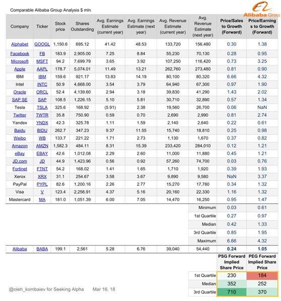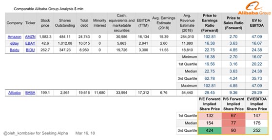 我们先看看阿里巴巴和它的几个竞争对手的估值情况: