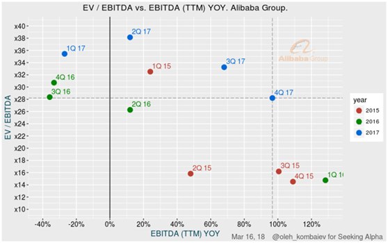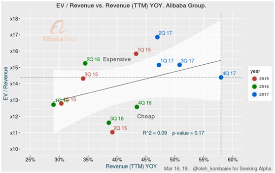 数据显示从PE和EV/EBITDA来看,阿里巴巴稍微有些高估,从PS看非常高估,而不是很多投资者认为的非常低估。