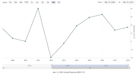 斯凯奇(NYSE: SKX)出席瑞银集团全球消费者零售大会,公司在会上给出最新的业绩现状和未来展望。笔者认为投资者对斯凯奇股票的看法也应有所更新。斯凯奇股价经历过快速增长时期,之后增速逐渐放缓,2015年至2016年期间更是股价大跌,成为买入良机。笔者曾在斯凯奇股价为26.8美元的时候表示看多该股,现在九个月过去了,公司股价大涨50%,但笔者认为斯凯奇仍然值得持有。