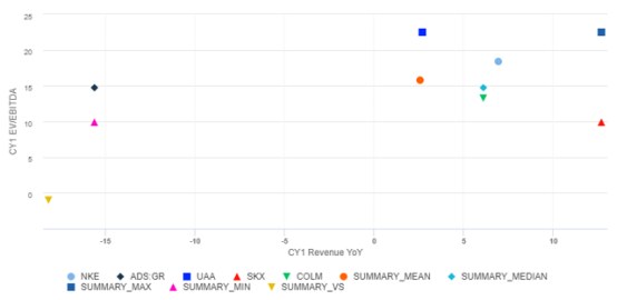 斯凯奇营收增速为同行中最高,但公司的企业价值倍数为同行中最低水平,这是市场低估斯凯奇的最大证据。
