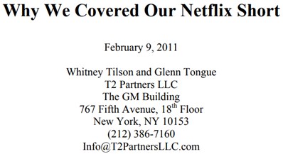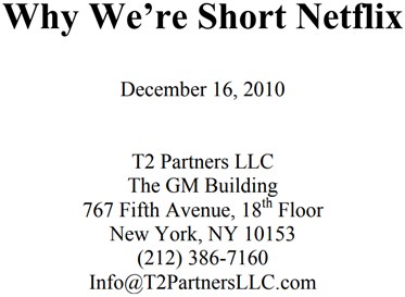 作者Whitney Tilson是基金Kase Capital的合伙人,其早在2010年12月发表了一篇长达18页的做空奈飞报告——《原来你什么都不想要,为什么我做空奈飞》。