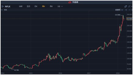 果真,爱情的力量是伟大的。随后的奈飞可谓是一路飙升,涨幅已经远远超过Whitney Tilson之前所认为的10倍,公司股价从不到50美元,如今已经跨过了山和大海,站在了300美元的山巅之上,而且大概率会像更高的山峰挺近。