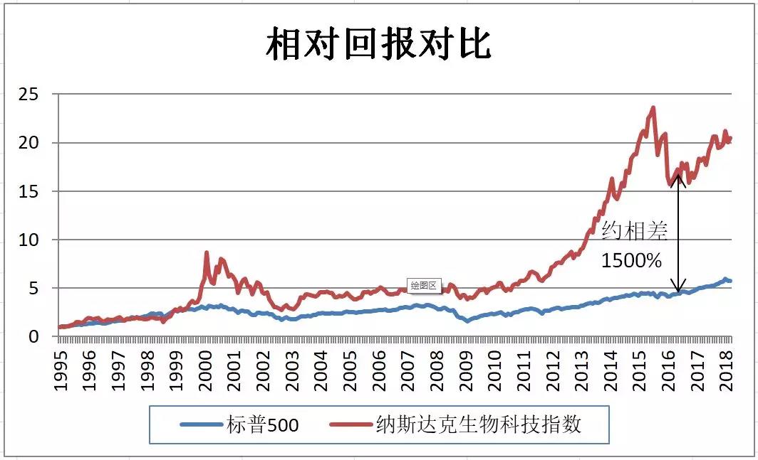 过去30年,生物医药产业发展迅猛,生物医药的年销售额以每年 25%~30% 的速度增长。在资本市场,这一板块也表现良好。自1995年~2017年这22年的时间里,NBI指数(纳斯达克生物技术)的涨幅为1875.8%,大幅跑赢标准普尔500指数同期涨幅(426.2%)。
