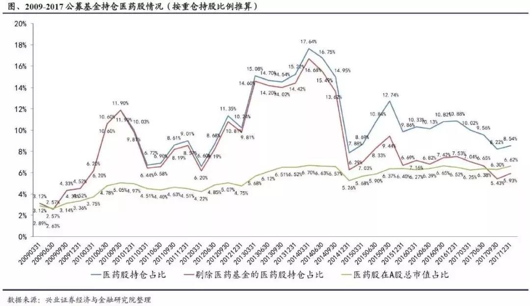 你说现在行情是在山顶,还是在山腰?看看下图的公募医药股持仓比,我想更大概率还是在山腰吧。