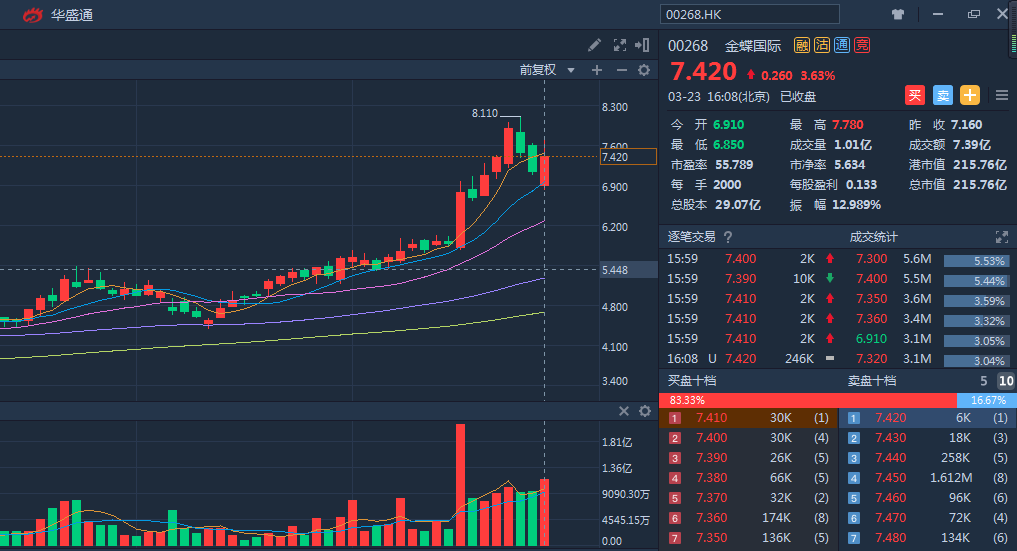2017年度全年业绩为营业额增长23.7%至23.03亿元人民币,税后盈利上升7.6%至3.1亿元人民币,期内整体毛利率维持在81.5%水平。集团为国内软件产业主导者、亚太地区企业管理软件及中间软件龙头企业、及全球在线管理和电子商务之领先服务商。2007年 IBM 入股金蝶国际,组成全球战略联盟。齐在 SOA、SaaS、咨询、应用服务及市场销售等领域作出全面合作。附属公司 - 金蝶软件(中国)重点内地企业管理软件市场。金蝶移动互联公司,专门负责为企业提供在线管理,及全程电子商务。金蝶国际软件(香港)之业务专注于亚太地区及海外而场。深圳金蝶中间件重点在中间件的业务。金蝶系的多款产品,包括ERP、云ERP、云之家(移动办公)、金蝶医疗(移动互联网医院)及快递100等均是国内市场之首选品牌。