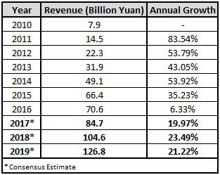 搜索仍然是百度业务的主要驱动因素,上个月,百度公布的第四季度业绩显示收入增长了29%,明显好于预期,这是百度公司两年来最令人振奋的收入增长,付费搜索业务仍在继续赚钱。通过下图可以看出,公司今年收入增长,随着公司业务的逐步扩大,公司收入迅速提升。
