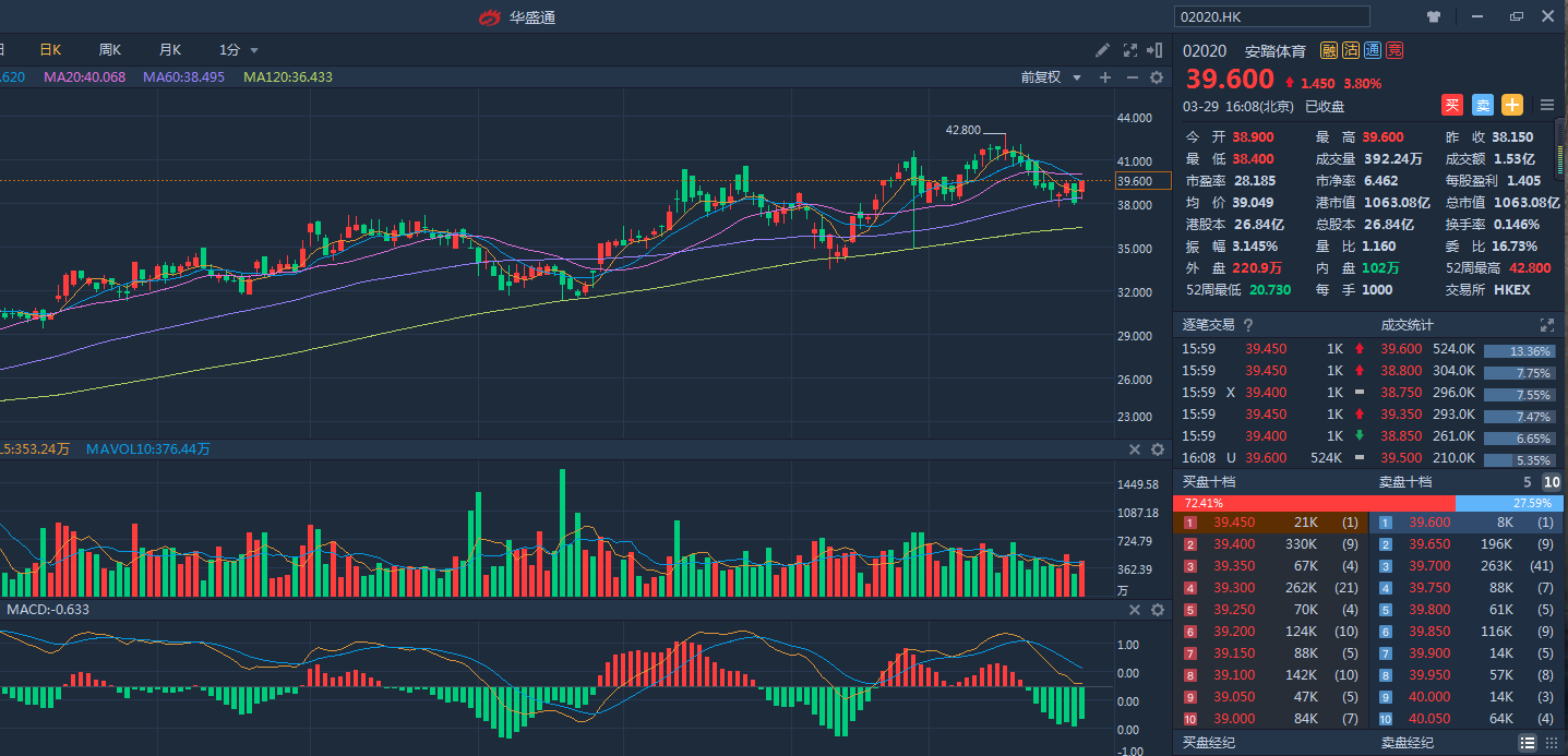 在刚刚结束的平昌冬奥和随后的俄罗斯世界杯足球赛、2020年东京奥运会、2022年北京冬奥委会及卡塔尔世界杯足球赛等体坛盛事,继续将安踏产品注入品牌故事。同时积极提升购物中心及百货公司店铺占比,致力拓展电子商贸,推出更多在线商品,为在线线下业务带来协同效应。可于现价38.70元附近买入,中长线可见52元,跌穿31元止蚀。