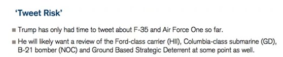 Bernstein:要时刻警惕因特朗普总统即兴发推引起的个股非正常波动。