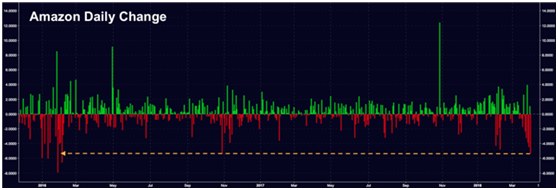 彭博是这样评论的:首先是特朗普很喜欢“教育”亚马逊,然后是没有计划改变电商税收政策,最后是他的推特,跌宕起伏的情节将公司的波动指数推升到历史高位。