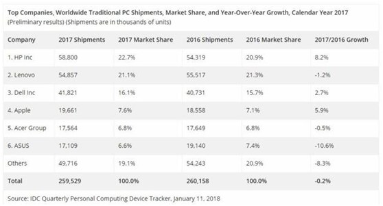此次,据彭博报道,苹果Mac产品将在2020年采用自家芯片。该事件实际上在财务上的影响不是很大。根据Stifel的分析师Kevin Cassidy的数据,去年苹果仅占到英特尔营收的4%,两年之后如果英特尔的业绩继续增长,这个比例会变得更小。如下图可见,苹果在传统PC市场去年市占率大约是8%。