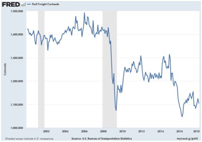 从下图可以看出,美国铁路货运继续呈现下滑趋势,最新三月份数据为1104080。