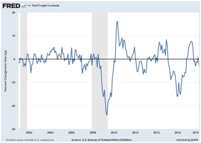 如果以百分比变动为衡量依据,通过下图可以看出,铁路货运指数为-2.8%,相比2017年年底明显下滑。