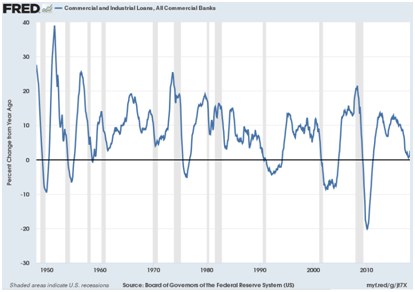 截止3月份商业银行贷款总价值为21384.559亿美元,但是从下图可以看出,商业银行贷款的增长速度正在呈现明显的下降趋势,以基年百分比变动来测算,更新于4月13日的数据为2.6%。
