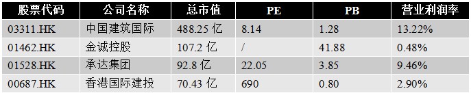 同业对比:中国建筑国际、金诚控股、承达集团、香港国际建投