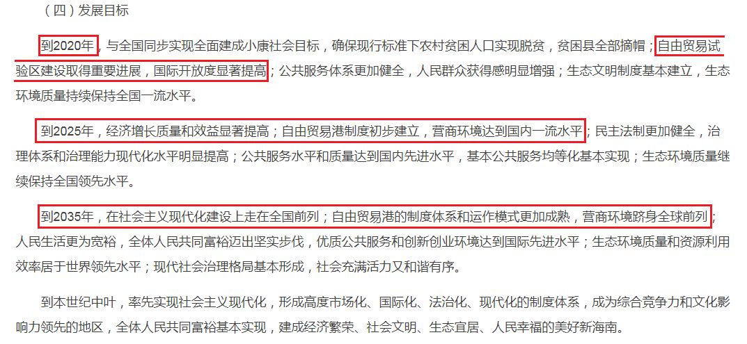 4月14日,国务院发布超万字的《支持海南全面深化改革开放的指导意见》,当中罗列了海南的战略定位,如“全面深化改革开放试验区”“国家生态文明试验区”“国际旅游消费中心”和“国家重大战略服务保障区”等,更将海南的发展目标定位:从2020年起至2050年,分四期实施贸易自由化。