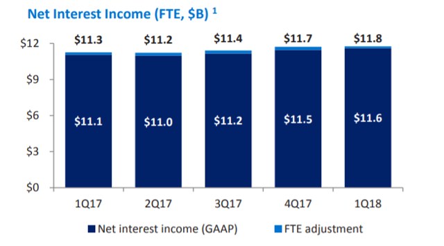 近几个季度中,净利息收入是华尔街大型银行利润增长的重要来源。美国银行一季度净利息收入持续增长。