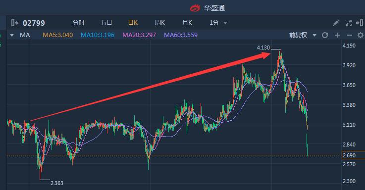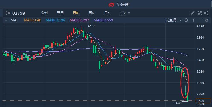 来源:华盛通;2018年4月20日中国华融股价日k线图