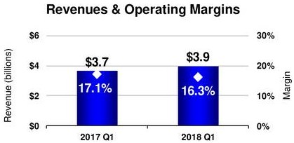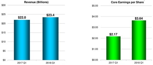 由于公司业绩第一季度保持良好增长,公司调高全年收益预计,从之前的13.8-14美元每股收益上调至14.3-14.5美元,运营现金流则从之前的150亿美元调整至150-155亿美元。