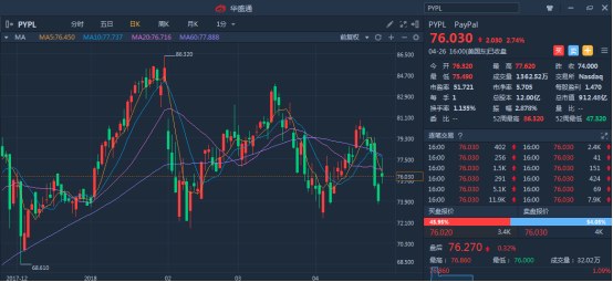PayPal 2018年一季度营收同比增长23.8%至36.9亿美元,比华尔街预期的35.9亿美元高出3.2%。按固定汇率计算,PayPal一季度营收同比增长22%。