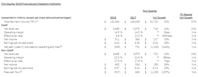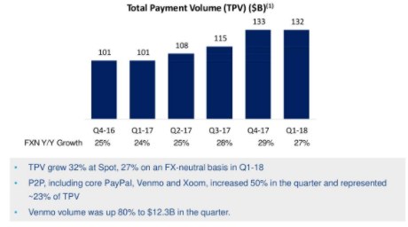接下来简要介绍PayPal 2018年一季度财报的业绩表现。