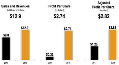 通过周期性产业复苏,得益于全球市场的恢复,基建产业的强烈需求,公司营收迅速提振,去年同期的98亿美元,增长到现在的129亿美元;而得益于销量的提升和价格的上涨,公司本季度营业利润从3.8亿美元增长到21亿美元。