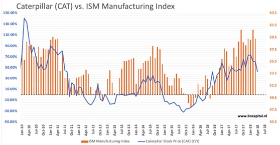 卡特彼勒在24日发布了公司第一季度财报,以超过预期9.7亿美元的190亿美元的营收和超过预期0.75美元的2.82美元EPS,出色完成2018年开门红,但是由于市场环境的变化,公司股票当天在上涨了4.7%之后,急速跳水,最终收跌6.2%,侵蚀了整个四月份的涨幅。
