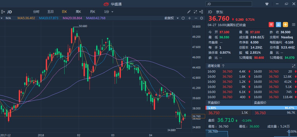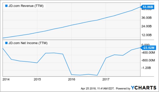 (从4月18日的40.18美元,至2018年4月24日的35.87美元)。收益预期的下调主要是由于物流、研发和投资成本上升。但京东的利润率预期下降是由于管理层强调投资于增长,保持其领导地位,以阻止竞争者进入其业务市场。