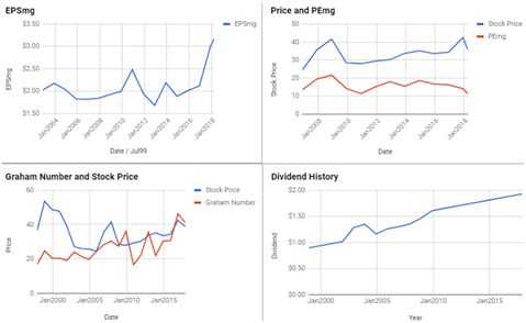 公司目前每股收益从2014年1.89美元到2018年预计增长至3.17美元,其收益增长超过了市场未来7-10年的年化1.36%增长速度,因此基于本杰明格雷厄姆的估值方法,未来公司价值将高于现在的股价。公司每股回馈股东1.97美元,股息收益率为5.5%;目前PE为11.23倍,低于行业平均的41.47倍,可以说是行业内估值水平最低的公司之一。