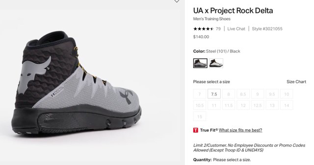 财报电话会议上,安德玛CEO Kevin Plank称公司的智能芯片跑鞋HOVR和联手“巨石强森”推出的Project Rock系列销量开始表现乐观,相关营销活动也收效甚佳。上述两个系列的运动鞋几乎售罄。据安德玛官网显示,Project Rock系列鞋仅剩一个尺码。