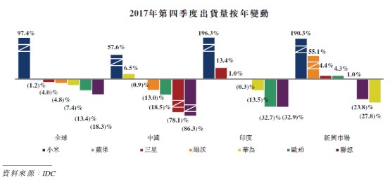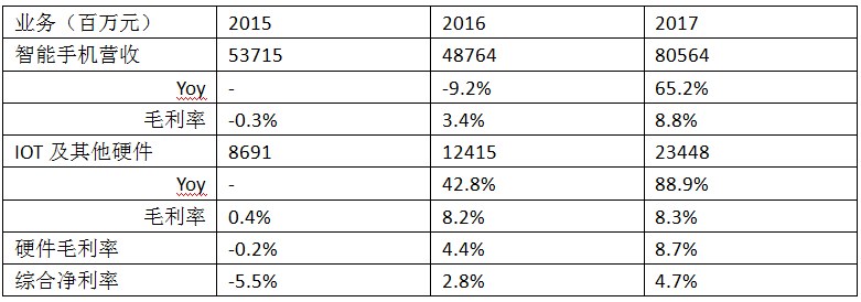 1)公司营收的主要来源——智能手机市场甜蜜期已过,即使有印度等新兴市场暂时维持不错的增长,但同时竞争也不小,尤其是国内残暴的竞争对手,2017年这样的高增长很可能不能再重演。