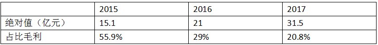 互联网服务收入主要来自在线广告和游戏。2015年到2017年,互联网服务虽然占比营收从未超过10%,但是毛利贡献基本在30%以上,从利润贡献的角度,小米确实可以看成是互联网公司,以硬件养服务的模式也讲得通。