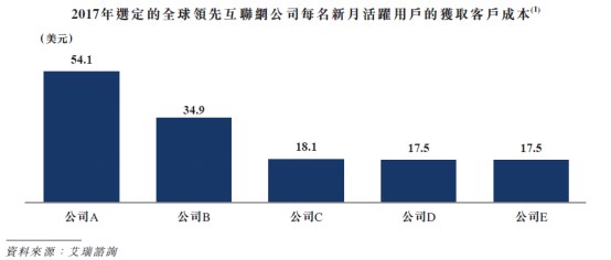 根据以上的综合净利率,2017年的数据是4.7%,而且这是包含了盈利能力更强的互联网部分之后的净利润率,可见雷军宣扬的硬件综合利润率不超过5%已经是个很高的目标了。由于小米的定位并不是一家硬件公司,而是互联网服务公司,互联网公司的一大成本就是获客成本。招股书数据,截止2018年4月27日市值超过150亿美元的互联网公司获客成本如下: