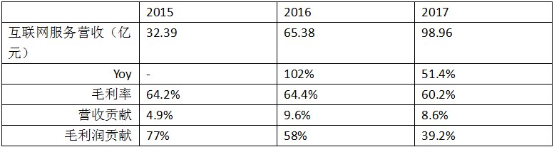 三、互联网服务:贡献大部分毛利,但人均服务收入处于低位
