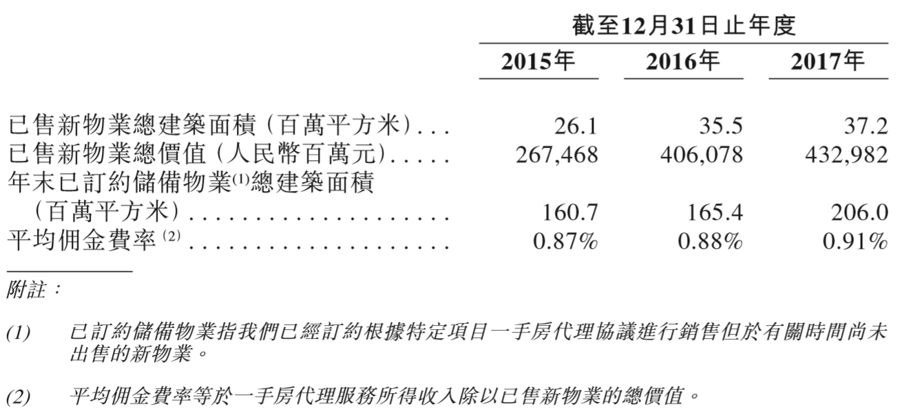 此外,公司已和42家房地产开发商签订战略合作协议,协议期从1年到6年不等。截至2017年12月31日,就一手房代理服务而言,公司拥有总建筑面积为206.0百万平方米,合计1028个已签约储备项目,可满足未来3~4年销售需求。