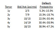 下图可以算出不同期限CDS隐含的违约概率。