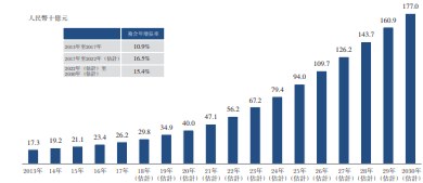 (中国2013年至2017年抗病毒市场,来源:弗若斯特沙利文分析)