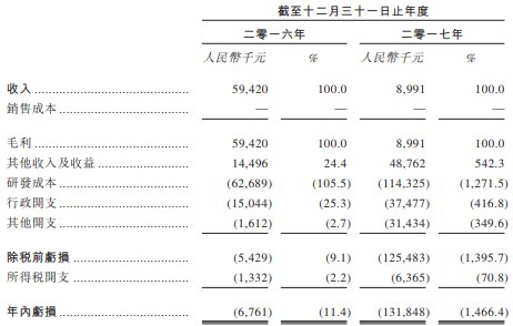 (歌礼公司2016年与2017年财务信息,来源:招股书)