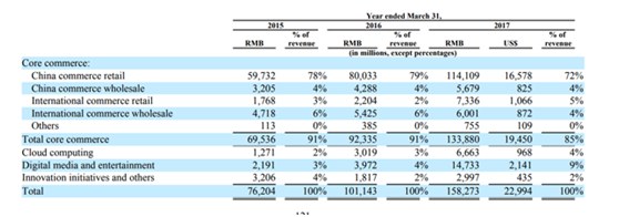 阿里云业务在过去三年保持了73%的复合增速,截止17年上半年,阿里在IaaS市场占有47.6%的份额,一季度云计算业务增长超过100%,毫无疑问云业务是公司未来一个重要的板块。