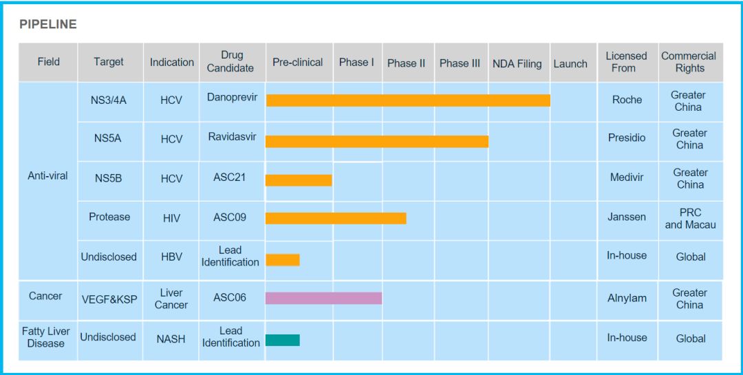 在公司的研发体系中,Danoprevir 和 Ravidasivir 联用的全口服方案是中国原研的DAA全口服方案,这也是目前世界上治疗丙肝的主流治疗方案。虽然丙肝抗病毒药物开发难度已经不高,但对于丙肝治愈率较低的中国,这两款新药对公司和患者都有巨大意义。
